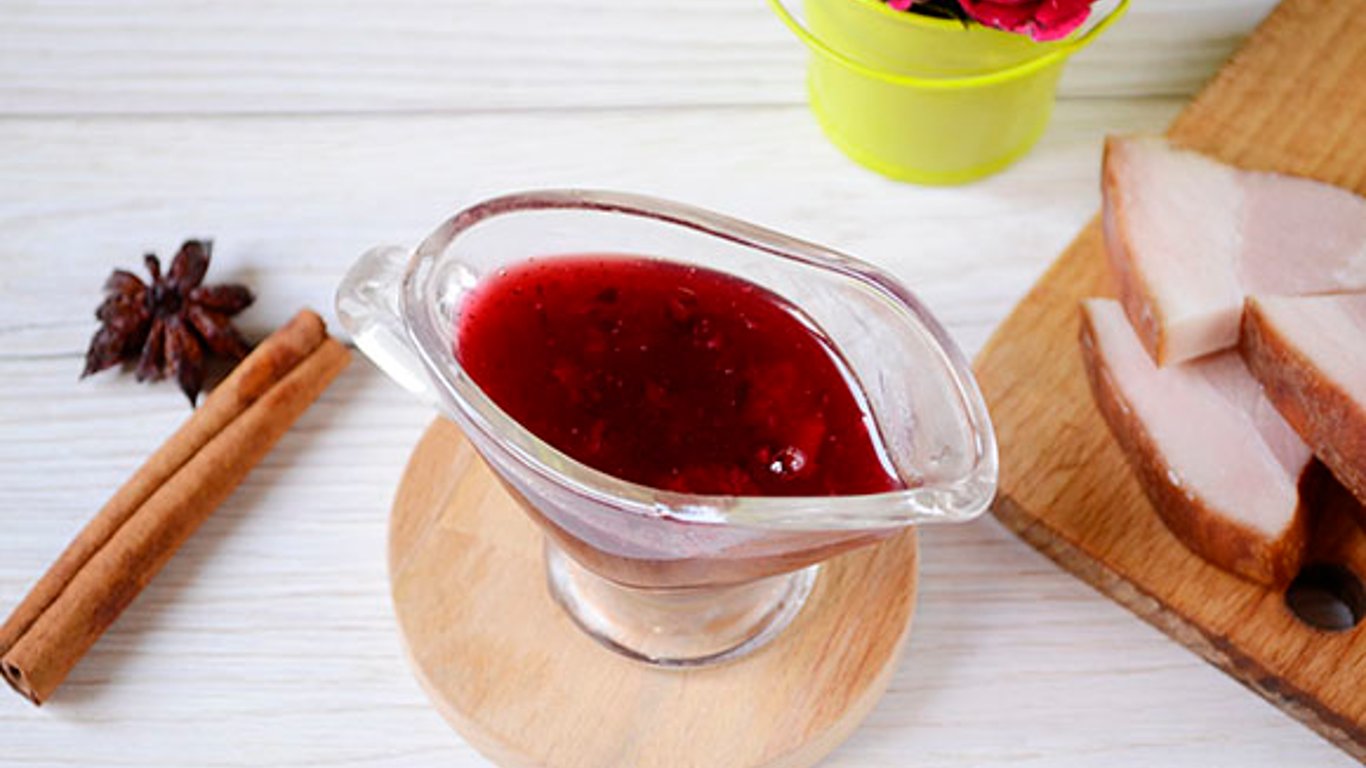 Для приготовления потребуется 5 минут времени и всего лишь семь ингредиентов: брусничное пюре без косточек, сливочное масло, розмарин, вино, чеснок, сахар и соль.