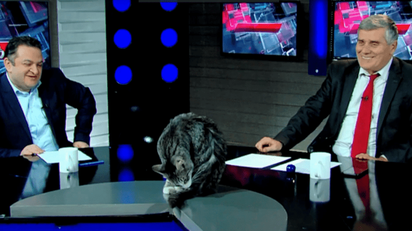 Кот вмешался в грузинское ток-шоу и стал мировой звездой: курьезное видео