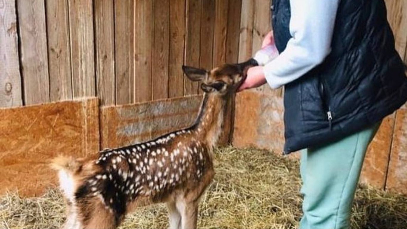 На Киевщине зоозащитники чудом спасли олененка от гибели. До этого животное жило у людей, где неправильно питалось.