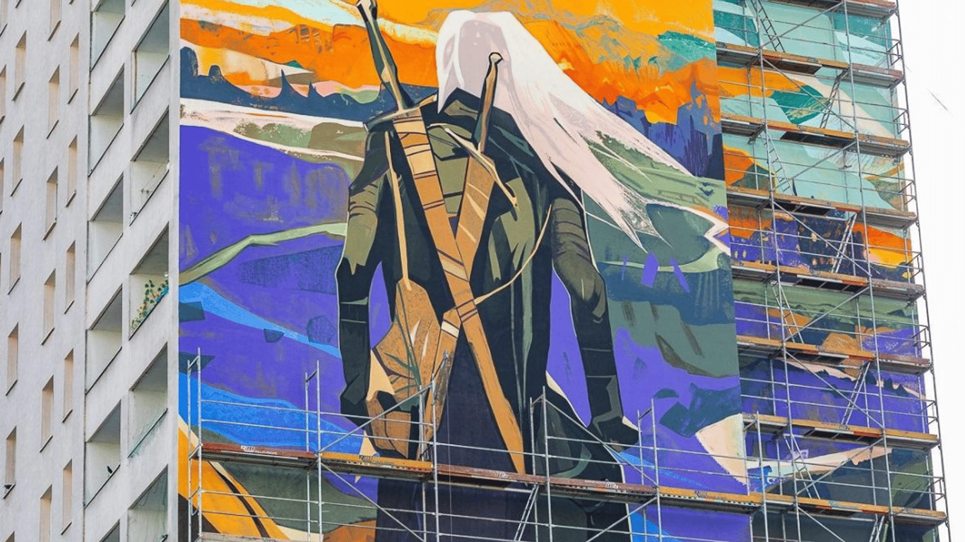 В Польше на многоэтажке создали крупнейшую уличную фреску в честь "Ведьмака". Фото